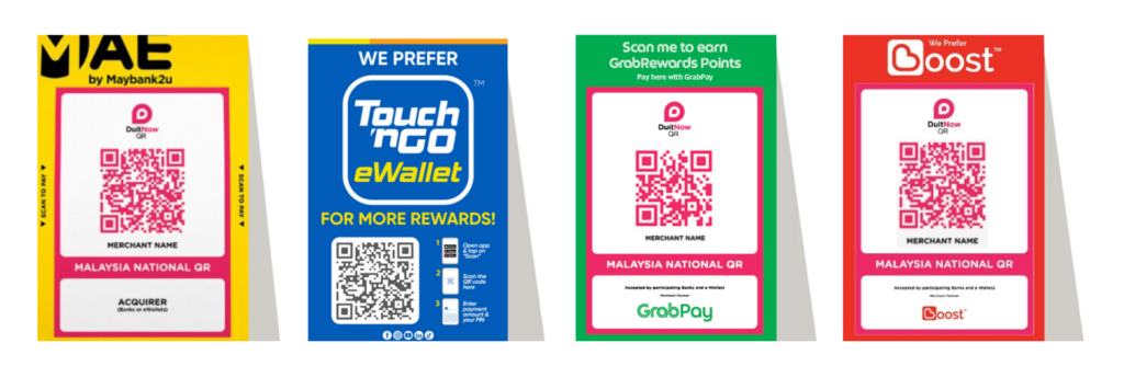 Maybank Soundbox is a QR code-based payment mechanism. Payment is acknowledged with an announcement over the speakers, and the amount is clearly displayed on screen.
